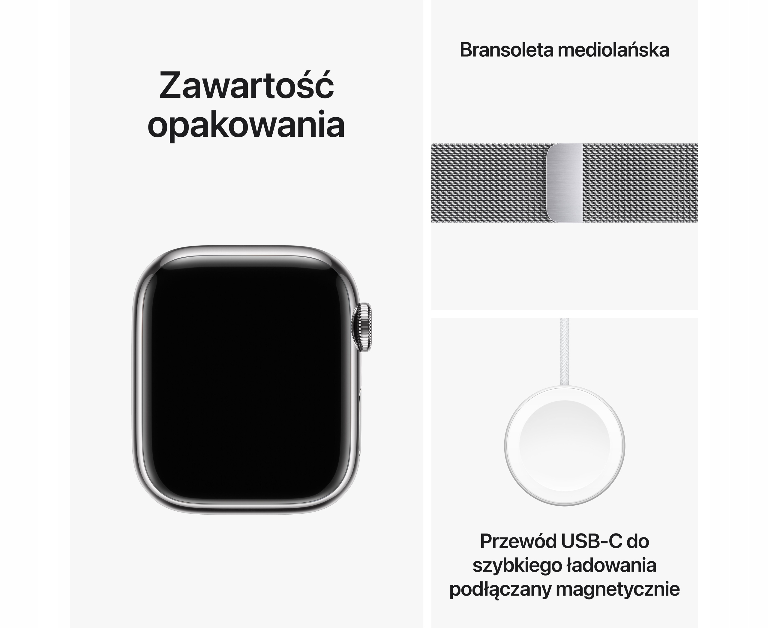 • Wysokiej jakości regulowana bransoleta MilaneseBand od firmy Tech-Protect która została wykonana w całości ze stali nierdzewnej i jest dedykowana zegarkom Apple Watch.