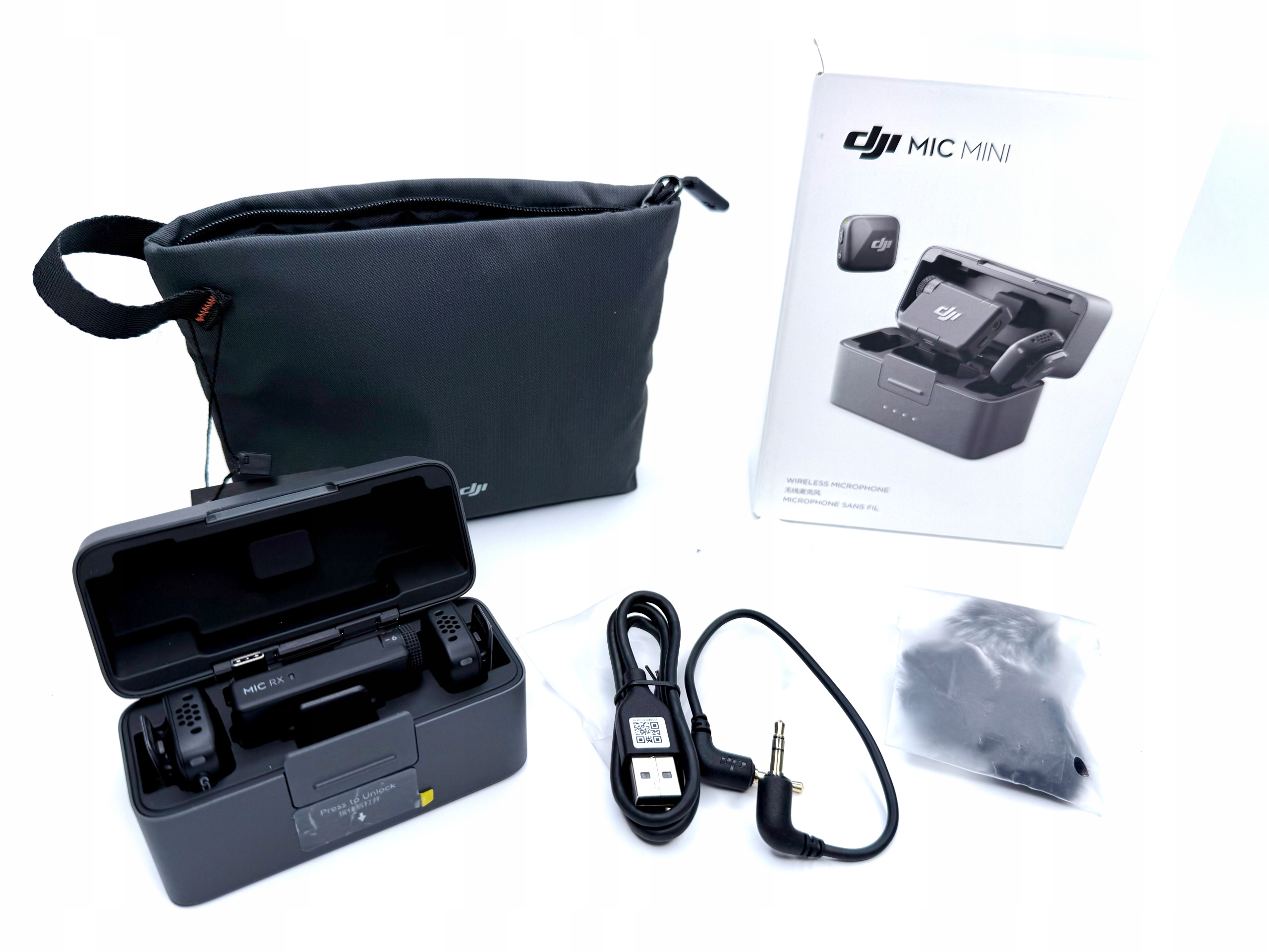 2x Nadajnik DJI Mic Mini ,2x Magnetyczny Klips ,2x Osłona Przeciwwietrzna (Czarna/Szara) ,2x Osłona Przeciwwietrzna (Czarna) ,Adapter Do Telefonu (USB-C) ,Etui Ładujące Do DJI Mic Mini ,Kabel Audio Do Kamery (3,5 mm TRS) ,Kabel USB Do Ładowania Z Rozdzielaczem ,Odbiornik DJI Mic Mini ,Torba Transportowa |