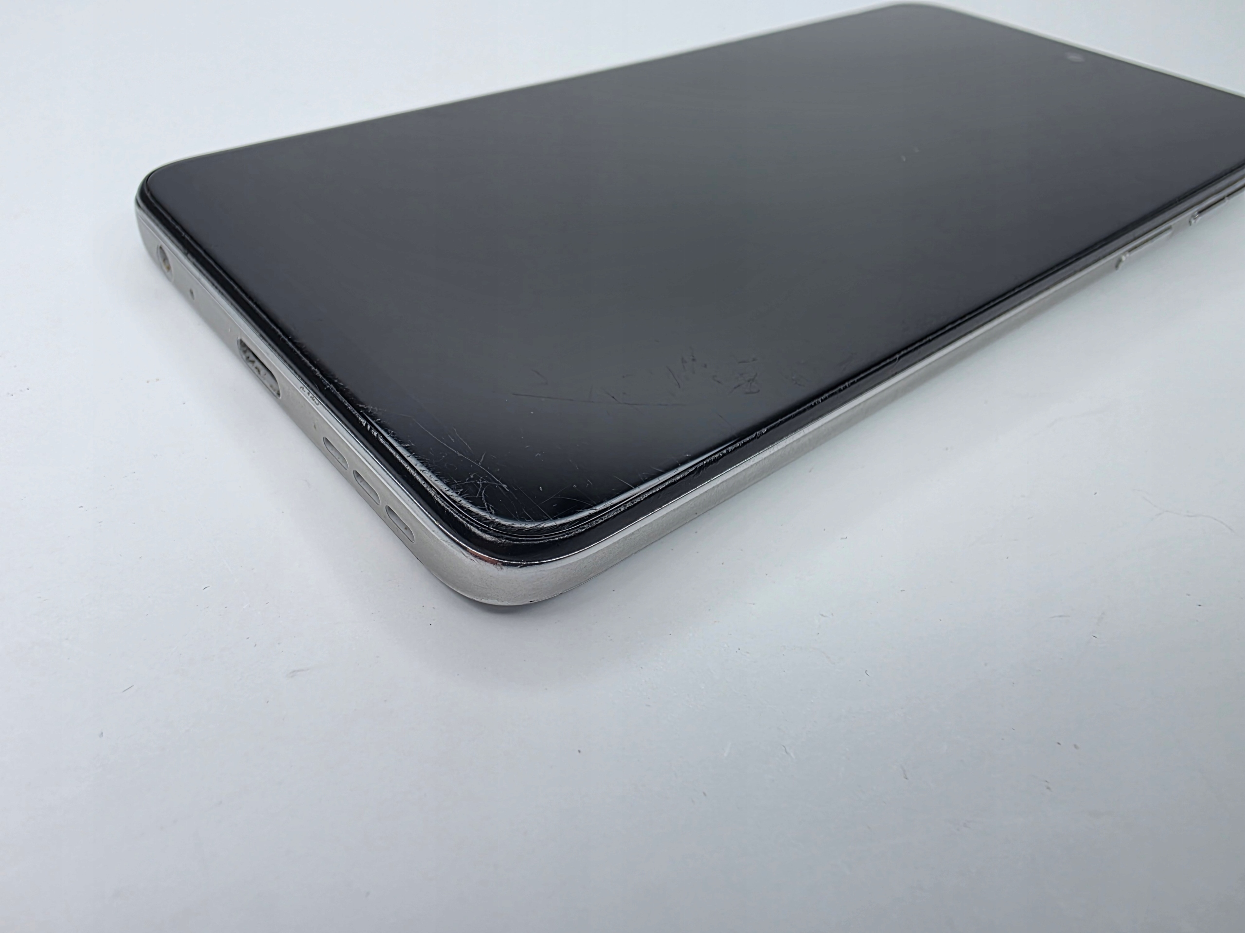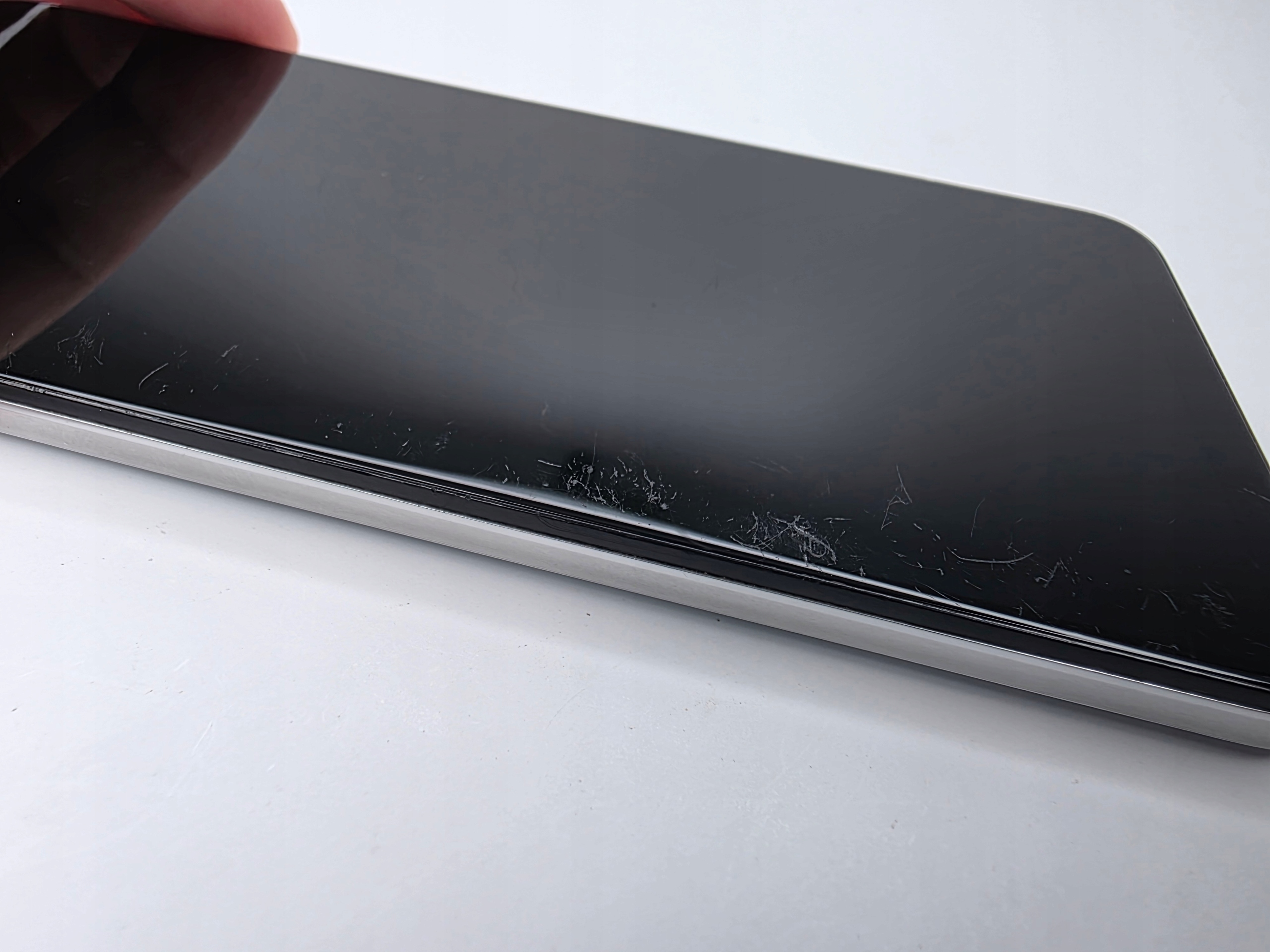 Wizualnie obudowa w bardzo dobrym stanie jednak ekran jest porysowany co widać na załączonych zdjęciach. Rysy widoczne są głównie na wyłączonym telefonie. Przy włączonym wyświetlaczu w niczym nie przeszkadzają.
